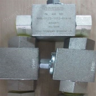 HYDAC贺德克液压*球阀符合 DIN-ISO1219,HYDAC 高压球阀用来截断工作介质的正反向流动,有两种不同型式: -阀块型 KHB-DN04-25 -袖套型KHM-DN32-50 功能原理旋转控制芯轴使球体从开启位置切换到关闭位置,系统压力将球体推向密封碗的无压侧并无泄漏地切断液流。
